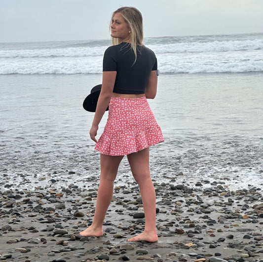 Falda Short Olas Terracota Flores